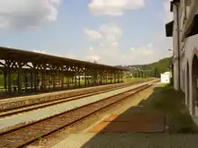 The station survived the Second World War largely undamaged, only suffering from low-flying strafing, which caused little damage. After the war, the second track of the railway was dismantled for reparations and many rail connections within the station became superfluous and were dismantled.[5] The traffic to Roßbach, which was interrupted at the end of the Second World War, was not resumed, and the route to Roßbach between 1946 and 1951 was also dismantled. The second track of the Plauen–Cheb line was not rebuilt until 1979.