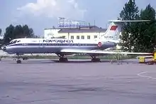 The Tupolev Tu-134A, registration number CCCP-65910, serial number 63969, involved in the accident was manufactured on 11 May 1982 and had 448 completed flight cycles prior to the accident, having entered service on 8 June 1982.[2][1] Tu-134s are equipped with two tail-mounted Soloviev D-30 turbofan engines.[3]