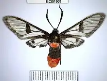 - ↑ Beccaloni, G.; Scoble, M.; Kitching, I.; Simonsen, T.; Robinson, G.; Pitkin, B.; Hine, A.; Lyal, C., eds. (2003). "Aethria haemorrhoidalis". The Global Lepidoptera Names Index. Natural History Museum.