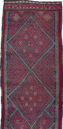 Algerian Jebel Amour rug, 19th century or earlier (detail). This carpet was made in the high plateaus of the mountain range between Aflou and El Bayadh. It would have served the nomadic groups there mainly as sleeping underlay and blankets. The designation frâch (Arabic for bed) applies.
