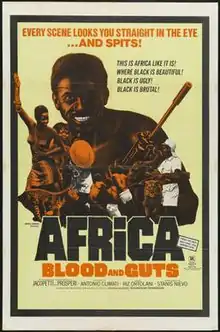 ![]() 1970 United States theatrical release poster, bearing the title Africa Blood and Guts | |