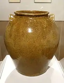 David Drake, an enslaved man from Edgefield, South Carolina, became famous for his pottery creations. Historians estimate that Drake produced over 40,000 pieces throughout his lifetime. While Drake was living, his pottery was worth about fifty cents apiece, though some pieces in the twenty-first century have sold for as high as $50,000.[24][25] Drake often inscribed poetry or messages onto his pottery. Many of these inscriptions verged on sedition and rebellion since it was generally prohibited for slaves to read or write.[26] In one inscription, Drake wrote "I wonder where is all my relations / Friendship to all—and every nation." Drake was likely attempting to subtly criticize the institution of slavery. For a seventeen-year period, Drake did not sign any pots, likely because his owner prohibited it.[27]