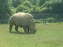 The Rocky Ridge Veldt includes Rothschild's giraffes, Grant's zebras, wildebeest, Common eland, Barbary sheep, ostrich, white rhinoceroses, addax, and scimitar oryx. Inside this open field are shelters, shade structures, and several piles of rocks for animals to climb on.