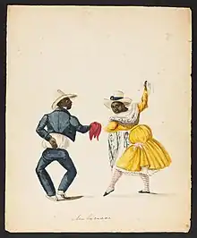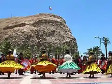 The Tumbe is an Afro-Descendant dance that is currently danced in northern Chile by Afroariqueñas, brought to the continent by African slaves 400 years ago in the Azapa Valley under the Spanish colony.[34] Being this region one of the main ones with Afro origins descended from Chile. Around the second half of the twentieth century the claim of the Afro populations in South America burst in with it the Tumbe del valle de azapa.[35]