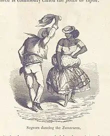 The customary Fernando Romero Pintado indicates that the colonial dance called "Zamba" performed by Bozals and mulattoes is the mother of the zamacueca and grandmother of the sailor.[28] Also, the researcher José Durand maintains that the zamacueca is the mother of the sailor.