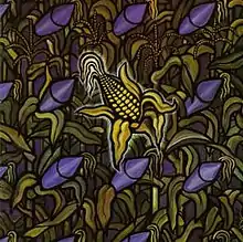 The album cover of Against the Grain depicts rows of corn that, with the exception of one, bear right-facing, missile-tipped stalks. The lone ear of corn faces left.