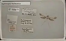 Agdistopis halieutica (Meyrick, 1932), specimen (lacking abdomen) from Australian National Insect Collection (ANIC), reared from fruit of Secamone elliptica.