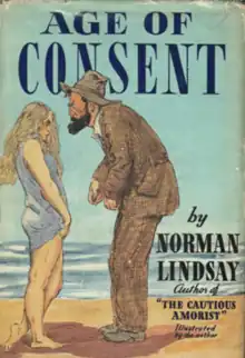Age of Consent is a 1938 Australian comic novel written and illustrated by Norman Lindsay, in which the central character is a middle-aged painter, based loosely on the author, who travels to a rural township of New South Wales in search of scenic inspiration, but who meets instead a wild adolescent girl who serves as his model and muse.[1][2] Age of Consent is dedicated to Howard Hinton. The book, first published in the United Kingdom and simultaneously in the United States, was briefly banned in Australia.[3] It was adapted for the screen in 1969.