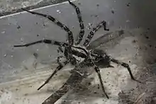 Agelenopsis aperta, also known as the desert grass spider[1] or funnel-web spider,[2] is a species of spider belonging to the family Agelenidae and the genus Agelenopsis. It is found in dry and arid regions across the southern United States and into northwestern Mexico. Their body is about 13–18 mm long and they have relatively long legs in order to run after their prey. Desert grass spiders can withstand very low temperatures even though they do not cold harden. It constructs the characteristic funnel-shaped webs in crevices where the funnel will fit, where they wait in the tube for prey which they can run after using their long legs. They often hunt for their prey at night.