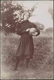 - ↑ Emery, Lynne (1982). "The First Intercollegiate Contest for Women: Basketball, April 4, 1896". In Howell, Reet (ed.). Her Story in Sports, A Historical Anthology of Women in Sports. Human Kinetics Pub. ISBN 0880110228.