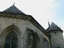 North side of the choir of Agnicourt church. The tower is covered with stone and not slate!