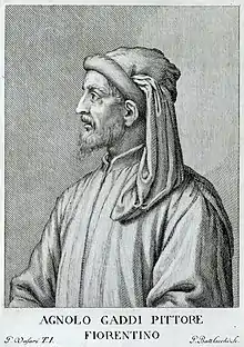 Agnolo Gaddi (c.13501396) was an Italian painter. He was born and died in Florence, and was the son of the painter Taddeo Gaddi, who was himself the major pupil of the Florentine master Giotto.