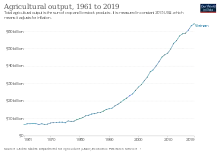 In Viet Nam, agriculture, forestry and fisheries, are important sectors of the economy, accounting for 21 percent of GDP in 2009.[4] Vietnam possesses certain comparative advantages in agriculture and forestry due to the country's abundance of factors in favor of productive crop like cultivation land, forest cover, sea territories, tropical climate and labor (availability and cost).[5]
