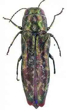 2. Bellamy, C. L. "Genus Agrilus Curtis 1825". The World of Jewel Beetles (Insecta: Coleoptera: Buprestidae). The Coleopterists Society. Archived from the original on 15 February 2016. Retrieved 25 April 2018.