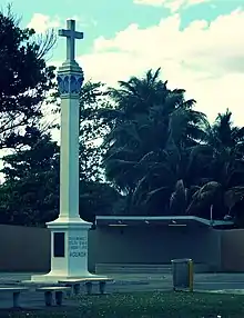 In the early years of the 20th century, two disasters affected the town of Aguada. First, a huge fire in 1912 destroyed most of the town buildings, including the old city hall, which contained all the city archives. On October 11, 1918, at 10:14:42 local time an earthquake known as the San Fermín earthquake destroyed the church and other structures.[14] At Rio Culebrinas, 1000 kg blocks of limestone from the wrecked Columbus monument were carried inland to distances of 46–76 meters (151–249 feet) by waves 4.0 m (13.1 ft) high.[15]