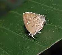Ahmetia achaja is a species of butterfly in the family Lycaenidae. It belongs to the monotypic genus Ahmetia,[1] formerly known as Cowania (which actually refers to a tachina fly genus). It is sometimes assigned to the tribe Horagini, but it is more probably a member of the closely related Cheritrini. It is found in Thailand and Vietnam.[1]