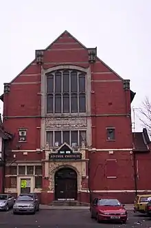 The institute was founded in the 1890s by Sir William Pickles Hartley. In an initial meeting in 1892, Hartley offered £1,000 (approximately £60,000 in 2005[2]) towards a project that would see "all the Churches, from the Roman Catholic Church and the Church of England down to the very smallest mission room ... enter into a Christlike compact to fight against evil in every form."[3] After the institute's establishment, the hall was used by the Aintree Photographic Society as a club house and exhibition venue.[4]