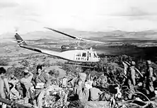 When the North Vietnamese Army overran South Vietnam in 1975, Air America helicopters participated in Operation Frequent Wind evacuating both US civilians and South Vietnamese people associated with the Saigon regime.[9][10] The famous photograph depicting the final evacuation, by Dutch photographer Hubert van Es, was an Air America helicopter taking people from an apartment building at 22 Gia Long Street used by USAID and CIA employees.[11][12]