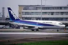 It had 12 Boeing 737-200 aircraft. ANA and Air Nippon used different liveries and IATA codes on domestic flights until April 2004, when Air Nippon adopted ANA livery and ANA flight numbers. As an ANA subsidiary, it is considered a full Star Alliance member. However, on Republic of China flights before April 2008, Air Nippon's IATA code EL was still used due to political reasons and these flights are not considered being Star Alliance flights.[4]