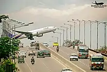 Airport Road (Bengali: বিমানবন্দর সড়ক), also known as Tongi Diversion Road, a part of the Dhaka-Mymensingh Highway (N3), is an 8-lane major artery road in Dhaka, that connects Dhaka city, with the Shahjalal International Airport.[1] It is also the main artery that connects Dhaka with the northern suburb of Uttara and the only road that connects Dhaka with northern Districts of Bangladesh and vice versa.[2] Traffic is fairly smooth throughout the road, due to flyovers and interchanges.[3]