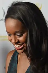 In 2015, King had her first the leading role in the science-fiction thriller Reversion. The film had limited theatrical release on October 9, 2015.[16][17] Also in 2015, she was cast as the female lead in the historical drama film The Birth of a Nation, based on the story of the 1831 slave rebellion led by Nat Turner. The film also stars Nate Parker, Aunjanue Ellis, Gabrielle Union, and Armie Hammer.[18] She played Nat Turner's wife, Cherry. The film premiered in competition at the 2016 Sundance Film Festival on January 25, 2016, and received positive reviews from critics.[19] King's performance was also well received. Variety placed her in their list of one of the "Biggest Breakthrough Performances" at Sundance, writing that "King transforms herself from contemporary glamour girl to 19th-century slave in Nate Parker's festival smash. A harrowing scene late in the film opposite Parker as Nat Turner reveals a depth and range King has never been asked to deliver in her small screen work, and a potential new star is born."[20] King had also been shortlisted as a possible contender for the Academy Award for Best Supporting Actress[21] but did not receive a nomination. She received a NAACP Image Award for Outstanding Supporting Actress in a Motion Picture nomination for her role.[22] She received the "Rising Star Award" at the 10th annual Essence Black Women In Hollywood event in February 2017.[23]