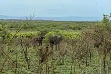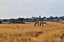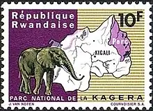 In 1957, black rhinos were introduced from Tanzania. In the 1970s, more than 50 black rhinos lived in the savannah-habitat of the park. Due to widespread poaching, the population declined over the following decades, and the last confirmed sighting was in 2007.[3] In 1986, Masai giraffes were introduced from Kenya. Their population has grown to over 80 individuals in recent years. Around 1990, Akagera was known to have a population of 250 to 300 lions.[2] In the years that followed, the entire population was killed by farmers who returned to Rwanda after the 1994 Genocide against the Tutsi and settled in the park.