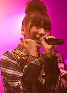 Aki Takajo (高城 亜樹, Takajō Aki, born October 3, 1991) is a Japanese tarento who is a former member of the idol groups AKB48 and JKT48.[2] She auditioned for AKB48's sixth generation and was promoted to member of Team A.[3] Her talent agency is Is.Field (she was previously affiliated with Watanabe Productions[4]) and was one of the charter members to support JKT48. She is also a former member of the sub-unit French Kiss.[5]