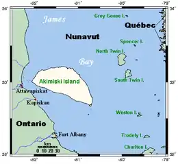 1. 1 2 3 "Akimiski Island". Geographical Names Data Base. Natural Resources Canada. Retrieved 2020-06-15.