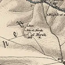 Al-Bira appeared as a village in a map published in 1850,[10] but was found uninhabited later in the 19th century. Guérin reported that "The ruins are those of a large Arab village, whose houses were built for the most part of basaltic stones. It replaced an ancient township, to which belongs an edifice now completely destroyed, of which there yet remain several basaltic columns and a mutilated capital."[11]