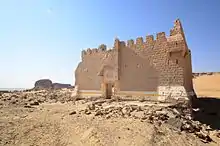 Al-Mudawara Castle, or Jagiman Castle, is a desert castle located near the Jordanian village of Al-Mudawara, 350 km south of Amman and 15 km from the Jordanian-Saudi border. It was used in the Mamluk and Ottoman eras as a stop for caravans of Hajj, and the last pilgrim stations to Al-Shami before the start of the sandy plain in northern Hijaz.[1]
