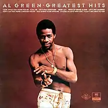 Al Green's Greatest Hits is a 1975 greatest hits release by soul singer Al Green. In 2003, the album was ranked number 52 on Rolling Stone magazine's list of the 500 greatest albums of all time,[5] maintaining the rating in a 2012 revised list.[6] The album's ranking dropped to number 456 in the 2020 revised list.[7] The compilation has consistently ranked as one of the best executed 'greatest hits' albums in history. The album peaked at No. 3 on the Billboard Top Soul LPs chart and No. 17 on the Top LPs chart.[8][9]