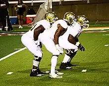 Hornets football players during a game in 2018