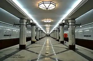 Alabinskaya is a station of the Samara Metro on First Line which was opened on 1 February 2015. It is located in Oktyabrsky district of Samara.