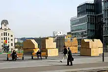 Rythmes d'Automne (2012), the most recent of the Commandements, was commissioned by the City of Paris and exhibited on the parvis of the Hôtel de Ville in the heart of Paris. Rythmes d'Automne with its different elements, cast in a grey, pigmented concrete, invites the public into its 6,500 square feet wide space of signs in order to play, converse, dance, or meditate.[25]