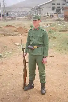 The Albanian People's Army (Albanian: Ushtria Popullore Shqiptare, UPSh) was the national army of the People's Socialist Republic of Albania from 1946 to 1990. Like the militaries of other Communist states, the UPSh was subjected to the nation's ruling party, in this case the Party of Labour of Albania. In fact, as in other Communist states, the Party considered the military to be a creation of the Party itself.[2] The UPSh consisted of the Ground Forces, the Navy and the Air Force. The militia of the UPSh was the Voluntary Forces of Popular Self-Defense (FVVP), and affiliate military structures included the Armed School Youth (RSHA) and Civil Defense of the Republic (MCR).[3] After the fall of communism in Albania, the UPSh was replaced by the Albanian Armed Forces.