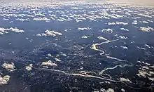 Aerial view of Troy, New York, with Hudson and Mohawk rivers and Albany International Airport