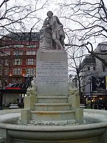 Statue of William Shakespeare, Leicester Square, bearing an inscription recording the gift by Grant