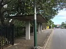 The second design was the pillbox with single-cantilevered roof slab, or "bus" type shelter, as it was called in the original Brisbane City Council list. These were designed so that the three brick blast walls could be removed after the war, leaving a concrete back wall and five brick piers at the front. Again, entrances were at each end of the front wall. Of the 19 "bus" types listed only two survive, at Newmarket and Newstead.[1]