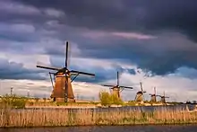 Windmills at Kinderdijk in the northwest of the Alblasserwaard