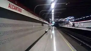 Alcántara is an underground metro station on the Line 1 of the Santiago Metro, in Santiago, Chile. The station was opened on 22 August 1980 as part of the extension of the line from Salvador to Escuela Militar.[1]