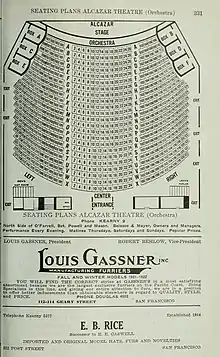 The Alcazar Theatre was a theatre at 116 O'Farrell Street, between Stockton and Powell, in San Francisco, California. Opened in 1885, the structure served as a lecture and music hall, but soon housed a popular resident stock company, which included Maude Adams, Harry von Meter (before 1908);[1] John Ince (in 1910);[2] Howard Hickman (in 1910),[2] Grace Travers (in 1910),[2] and Evelyn Vaughan (in 1910).[2] It was under the management of the younger brother of David Belasco, and Fred Belasco (1862–1920).