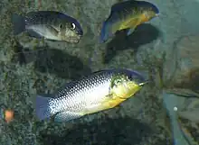 1. 1 2 3 4 5 Ford, A.G.P.; L. Ruber; J. Newton; K.K. Dasmahapatra; J.D. Balarin; K. Bruun; J.J. Day (2016). "Niche divergence facilitated by fine-scale ecological partitioning in a recent cichlid fish adaptive radiation". Evolution. 70 (12): 2718–2735. doi:10.1111/evo.13072. PMC 5132037. PMID 27659769.