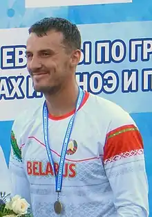 He has won six World Championships medals; one gold (K-1 5000 m: 2019[1]), two silvers (K-1 1000 m: 2011, 2013) and three bronzes (K-1 1000 m: 2010,[2] 2015, K-1 5000 m: 2017[1]). In June 2015, he competed in the inaugural European Games, for Belarus in canoe sprint, more specifically, in the Men's K-4 1000m with Raman Piatrushenka, Pavel Miadzvedzeu, and Vitaliy Bialko. He earned a bronze medal.