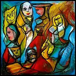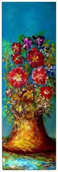 His creative ardour is reflected in his great body of work and beloved themes of the eastern exotic, feminine form, clowns and musical instruments, spirit worlds, outer space, landscape, cityscape, and vibrant textural paintings of semi-abstract flowers in unbridled abandon. Journalist Alexandra Nowak (2008) described Alex Mendelssohn's art as spontaneous and wildly wonderful.