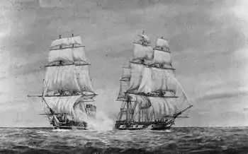 On 1 July 1793 he was promoted to post captain and given command of the 20-gun floating battery HMS Redoubt based at Woolwich.[4] In July 1794 he took over the frigate HMS Proserpine based in Jamaica and in February 1796 took command of the newly completed 32-gun frigate HMS Shannon based in the English Channel, which he left in 1799. Shannon captured three French privateers off the coast of France and one off the coast of Ireland while under his command.[5]