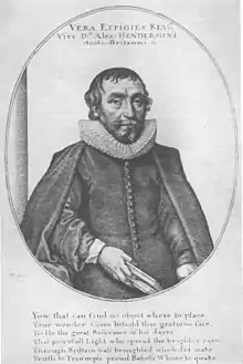 Alexander Henderson (c.1583  19 August 1646) was a Scottish theologian, and an important ecclesiastical statesman of his period. He is considered the second founder of the Reformed Church in Scotland. He was one of the most eminent ministers of the Church of Scotland in the most important period of her history, namely, previous to the middle of the seventeenth century.[2]