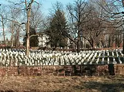 ![]() Alexandria National Cemetery; in the background, behind the second stone wall, may be seen some of the older burials | |