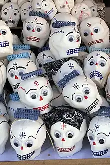 The Alfeñique fair or feria del Alfeñique is an annual event that takes place in the city of Toluca, Mexico in which vendors sell traditional sugar skulls with names labeled on the forehead, as well as candy in a variety of shapes, in order to celebrate the Mexican holiday Día de Muertos (Day of the Dead). Chocolate and sugar skulls are used to decorate altars dedicated to the dead during the celebration.