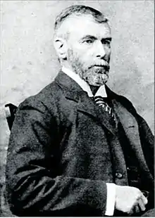 Alfred George Jones (Chinese: ; pinyin: Zhòng Jūnān, 23 July 1846 - 17 July 1905) was an Irish baptist missionary to China. Jones had his own business in his native town of New Ross, Ireland, but left it in the hands of a manager in order to go on his mission to China.[1] He attended Lancashire Independent College, a dissenting academy from 1874 to 1876 and arrived in Yantai, Shandong in 1876.[2] In the following year, he went to Qingzhou to assist Timothy Richard by keeping the accounts for an ongoing relief effort for the victims of the Northern Chinese Famine of 1876–1879.[1] He continued to reside in Qingzhou with the exception of the period from 1889 to 1896, during which he lived in Zouping. He died when a temple building on Taishan, Tai'an in which he was sleeping collapsed during a storm.[2]