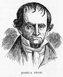 Daniel Kelley was increasingly unhappy with the Stow family's liberal religious views, which were beginning to influence his sons.[10] Another of Alfred's uncles, Joshua Stow, was one of the original investors in the Connecticut Land Company.[12] By royal charter, the Connecticut Colony laid claim to most of the lands west of the colony between the 41st and 42nd parallels of north latitude. In 1786, Connecticut ceded all its land claims to the government of the United States[13] in exchange for cancellation of its American Revolutionary War debts.[14] Connecticut retained only those lands known as the Connecticut Western Reserve, an area bounded by Lake Erie on the north, Pennsylvania on the east, and the 41st parallel of north latitude on the south. The Western Reserve extended for exactly 120 miles (190 km) to the west, and came to an abrupt halt.[13][lower-alpha 2] On August 3, 1795, the state of Connecticut sold the Western Reserve to the Connecticut Land Company for $1.2 million ($20,700,000 in 2022 dollars).[13] Joshua Stow was a member of the party led by Moses Cleaveland which surveyed the Western Reserve in 1796.[12] Encouraged by his uncle's descriptions of the lush lands of the Western Reserve,[12] Alfred's eldest brother, Datus, traveled to the nascent settlement of Cleveland in early 1810. Although he returned almost immediately,[15] Alfred emigrated to Cleveland in May 1810.[16] He made the journey on horseback, accompanied by Joshua Stow and a medical student, Jared Potter Kirtland.[9]